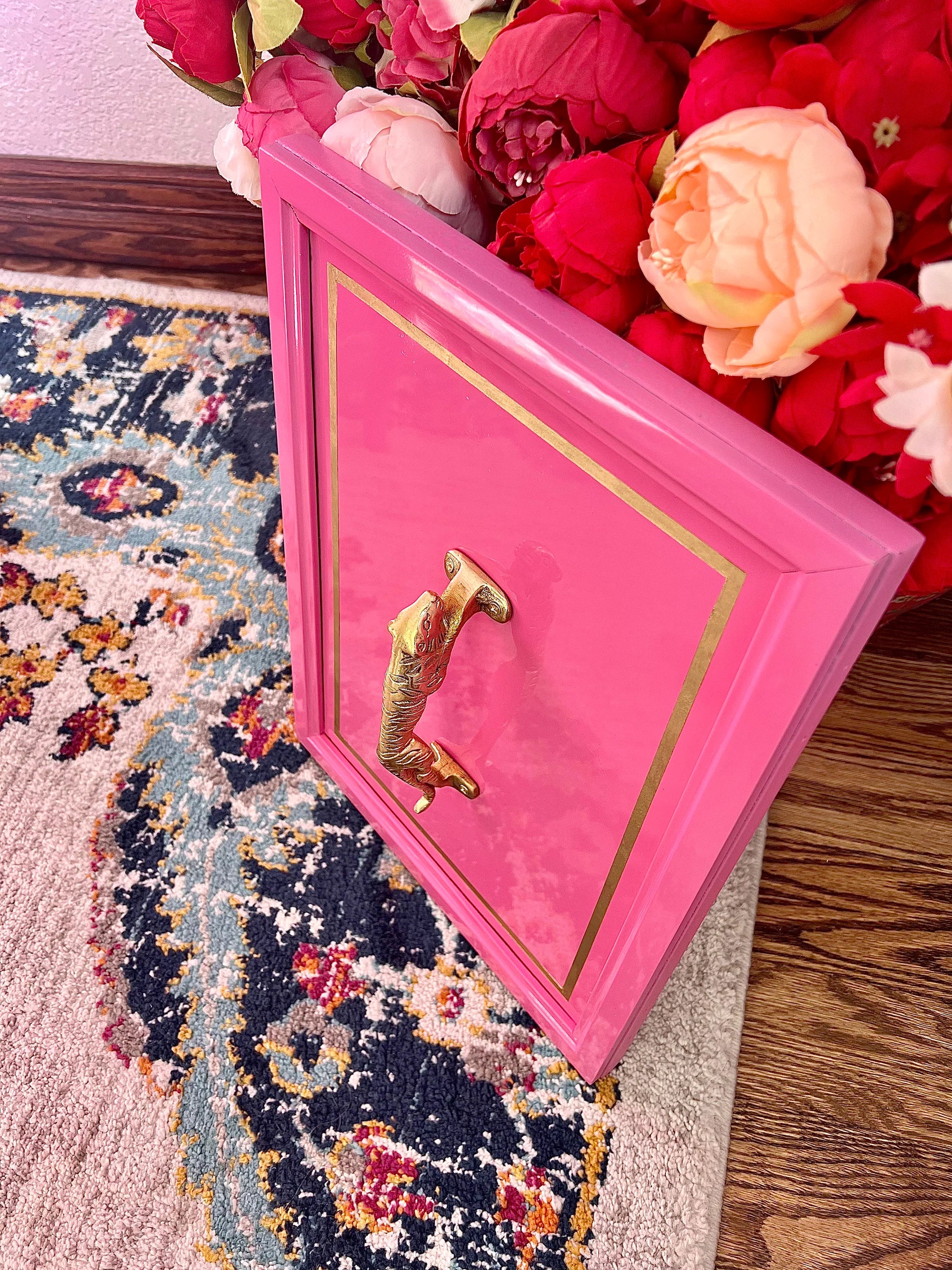 This 2 drawer, 3 Drawer Broyhill bamboo buffet/server was lacquered in a high gloss bubblegum pink, a look which can be recreated or you may choose any Sherwin Williams or Benjamin Moore color you would like.