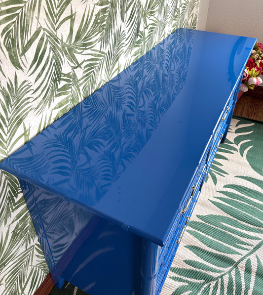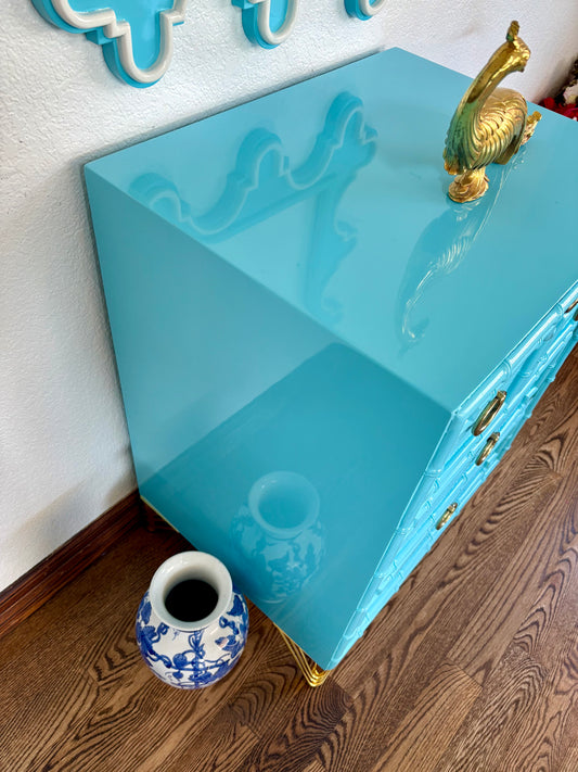 High Gloss Dixie Blue Faux Bamboo Dresser